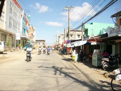 Đường đi Cầu Ngang, dãy nhà bên trái lúc trước là Trường THCS Châu Văn Đơ