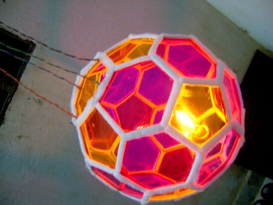 Còn đây là hình về lồng đèn trái banh, được mần từ dây điện cứng, dây thun, bông gòn và giấy kiếng